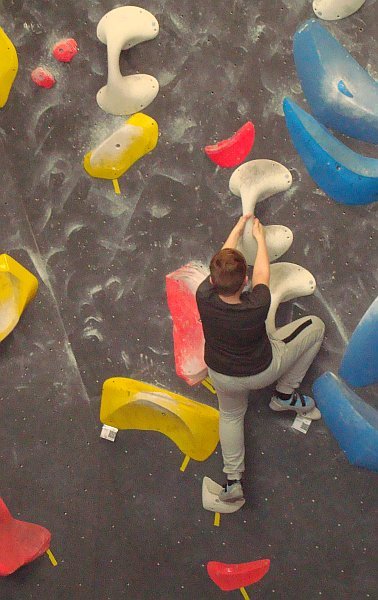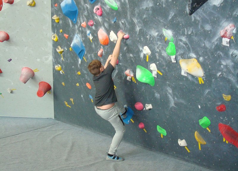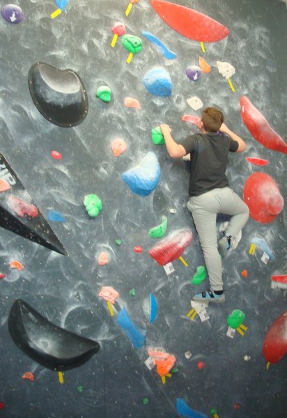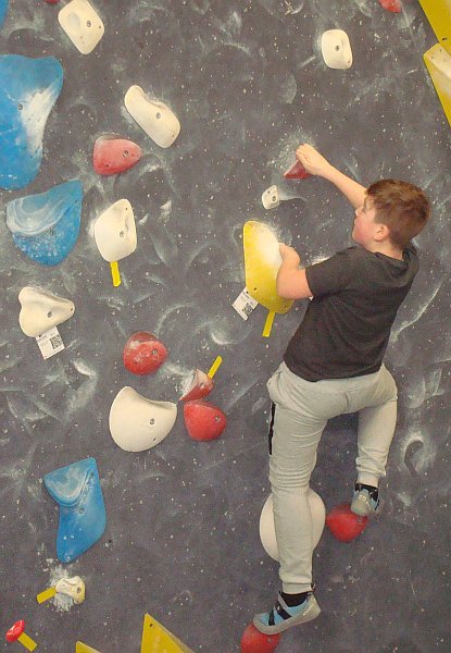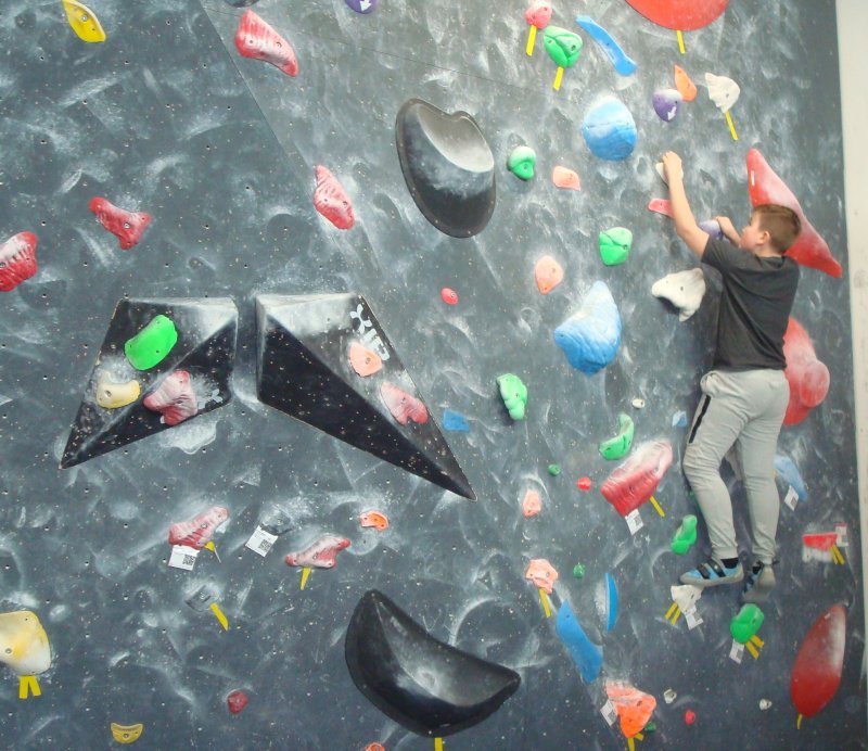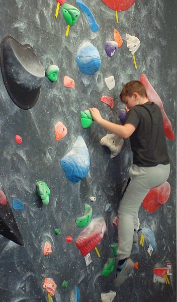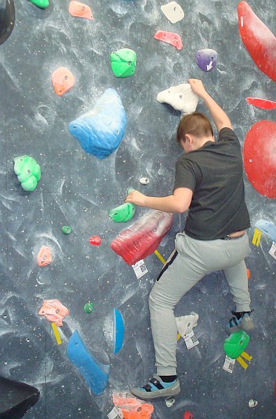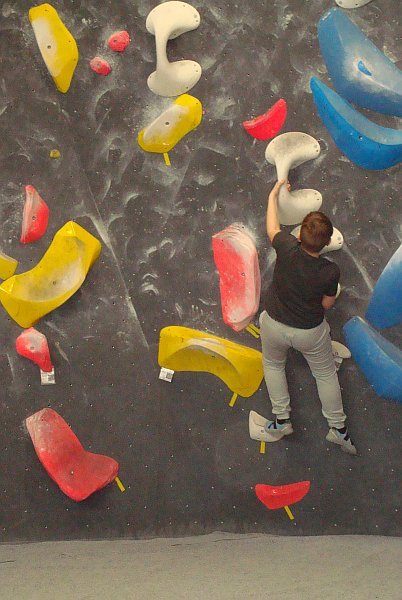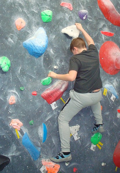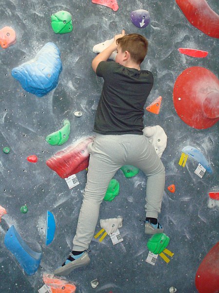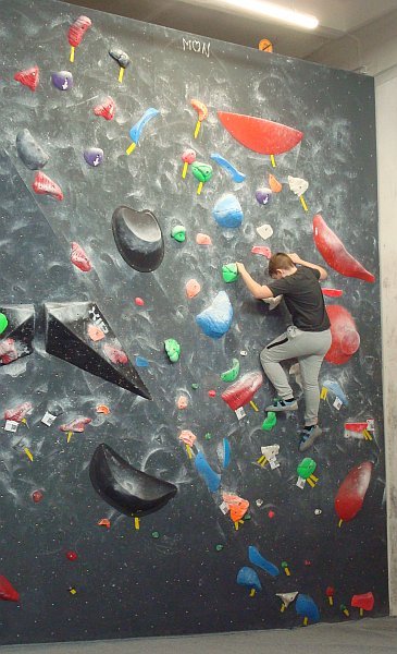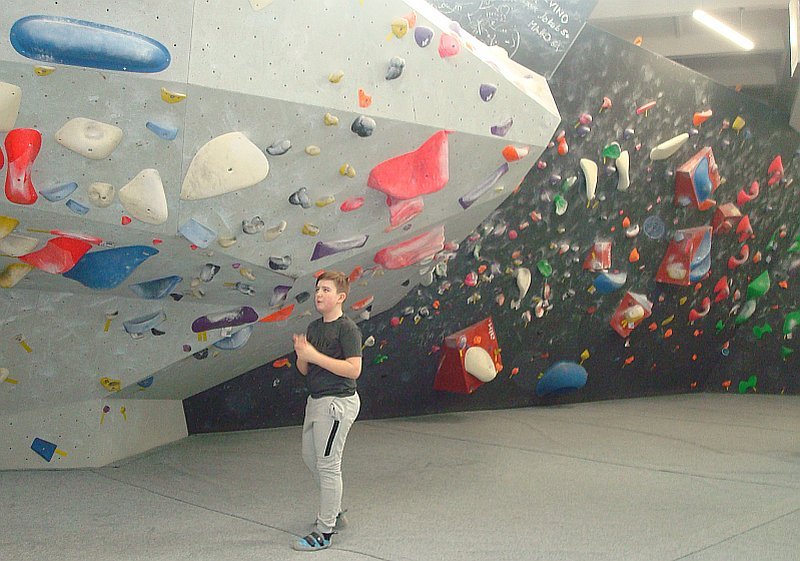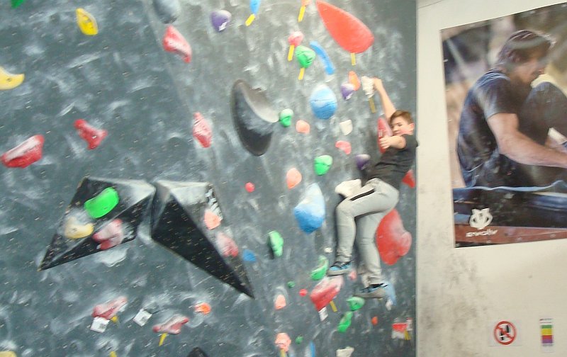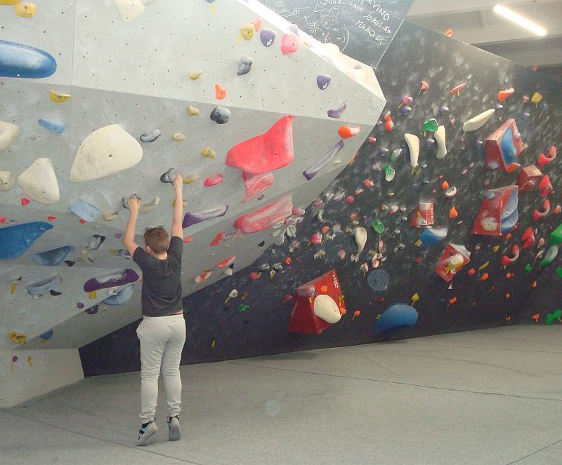 A pretože práve máme jarné prázdniny, nápad vyskúšať si na vlastnej koži samotnú stenu a niektoré z jej bouldrových ciest nemal chybu. Musím priznať, že na začiatok to nebolo nič moc. Ruky a najmä prsty s dlaňami dostávali zabrať. Aj svaly rúk či nôh by potrebovali väčšiu silu. Keď potrénujem a zameriam sa na odstránenie uvedených nedostatkov, bude to určite lepšie. Ale inak sa mi tam celkom páčilo.